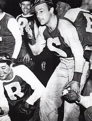 This is how Gene Kelly spent his 36th birthday, on a baseball field playing a charity match with good friends,