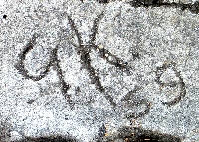 1969' (son Tim) and then the word 'BRIDGET' (Gene’s younger daughter) faintly inscribed nearby. We were dumbfounded and very moved that here was a record literally set in stone, of possibly the happiest parts of Gene's life in that house. What fun he must have had through the years, making the footprint and the initials with those he loved.