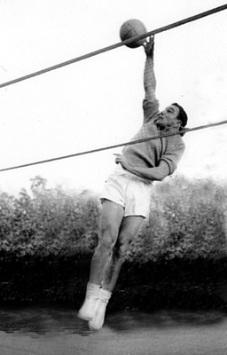 Gene: The volleyball games were famous, I guess, because of the high standards we tried to maintain. We used to invite teams from Santa Monica Beach and the YMCA to come out to the house. Then we’d get together a team of our own, usually Hollywood actors, and we’d fight it out. Some of the games were terrific. They provided me with a most enjoyable way of keeping fit. And it wasn’t only volleyball we played. Touch football was in vogue at the time, and we had some rough goes at that. I played a lot of tennis as well so, one way and another, any surplus energy I may have had during those years was burned up...